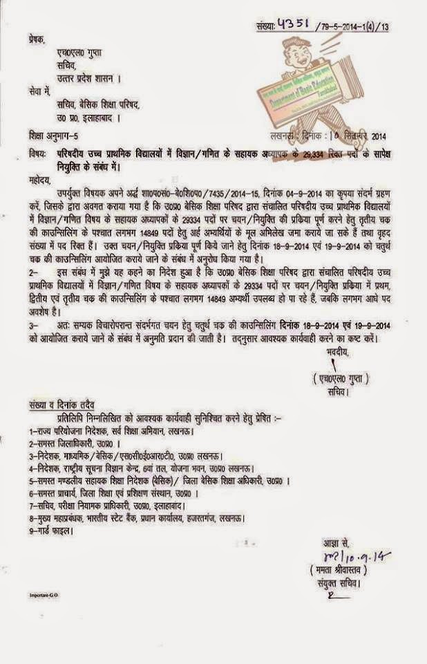 - बेसिक शिक्षा परिषद के जूनियर स्कूलों में विज्ञान-गणित विषय के 29334 पदों पर नियुक्तियां होनी है।